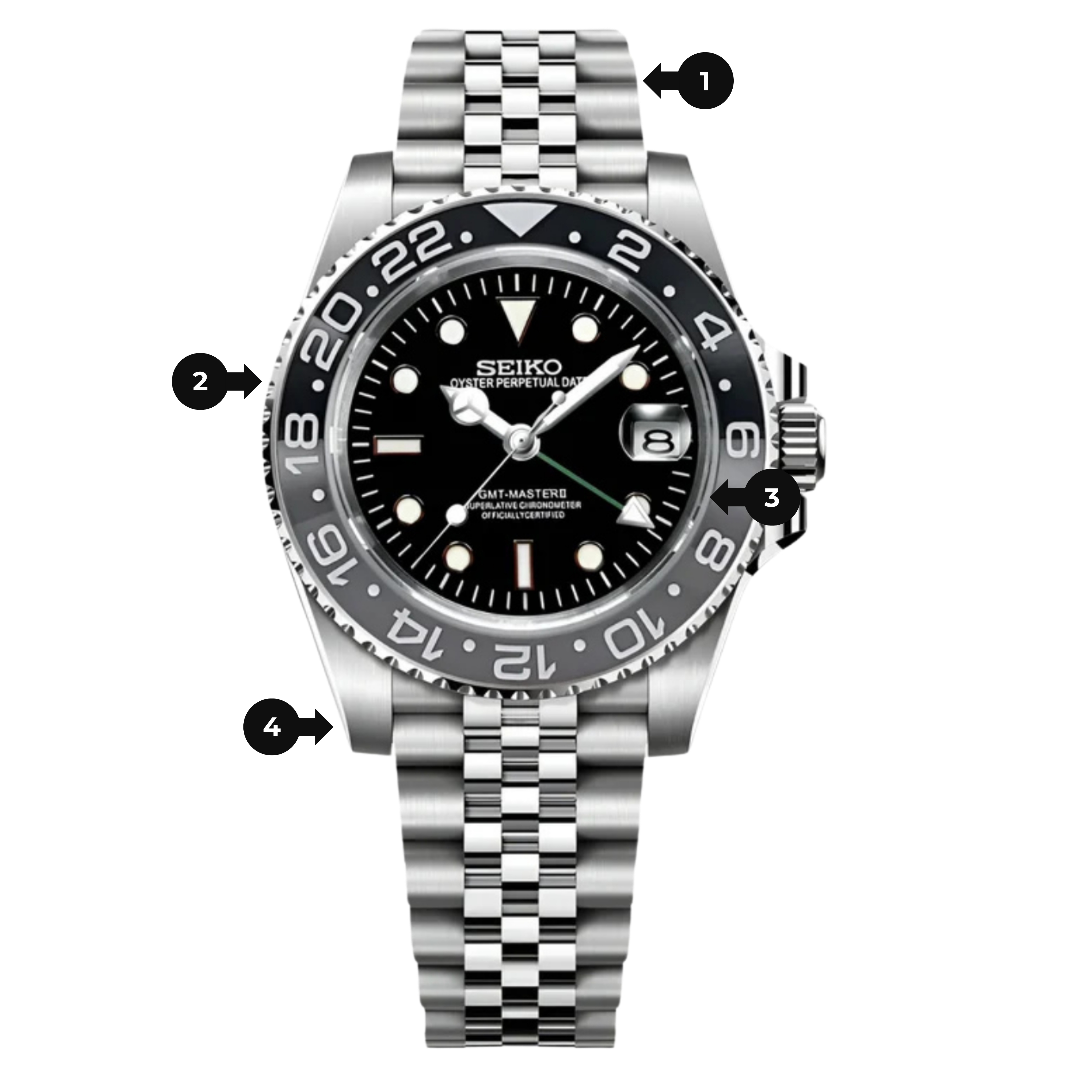 Inspired by the iconic GMT design, and featuring the prestigious Seiko NH34 automatic movement, we present the Seiko Mod GMT. A 40 mm high-end quality watch combining the perfect alliance between excellence and accessibility.