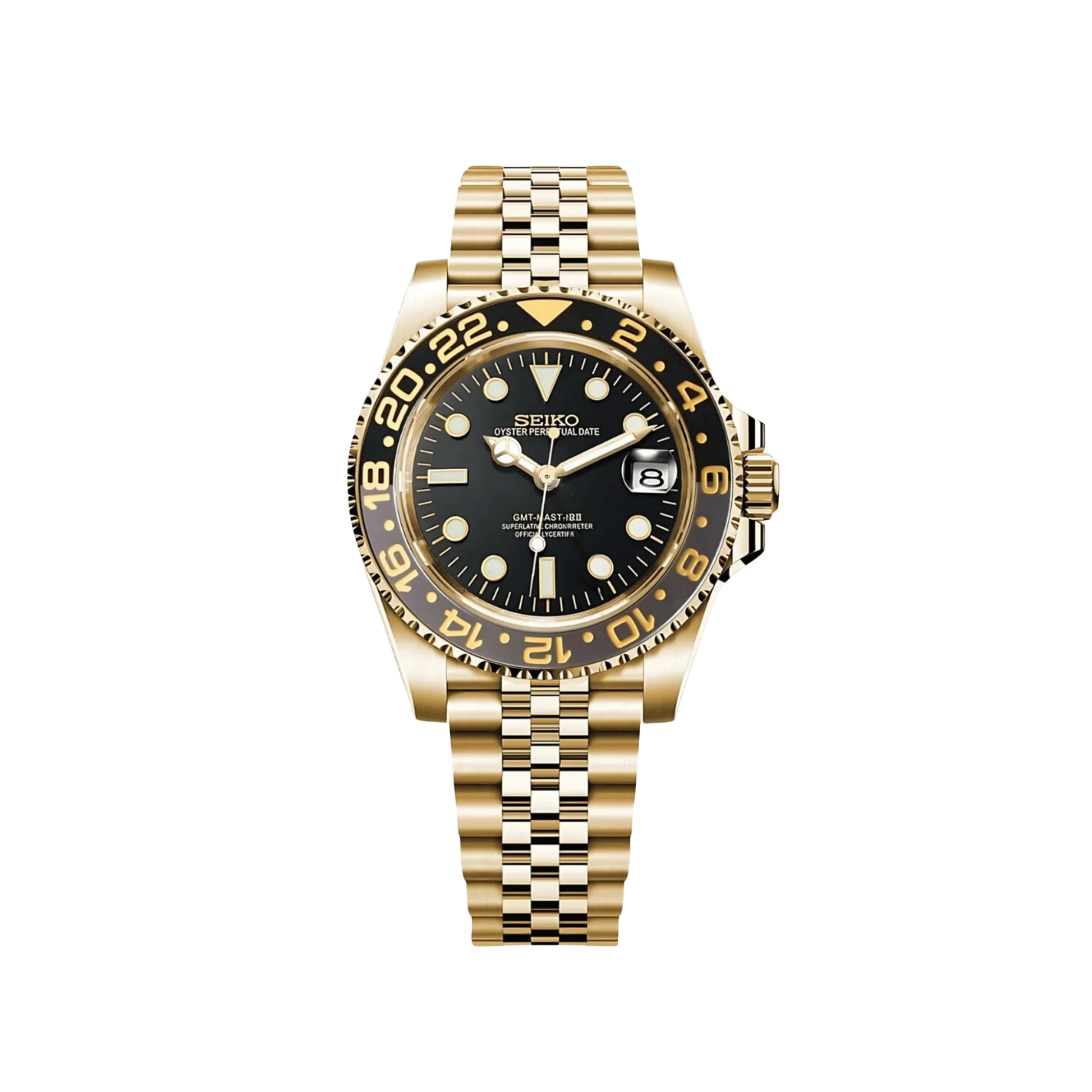 Inspired by the iconic GMT design, and featuring the prestigious Seiko NH34 automatic movement, we present the Seiko Mod GMT. A 40 mm high-end quality watch combining the perfect alliance between excellence and accessibility.