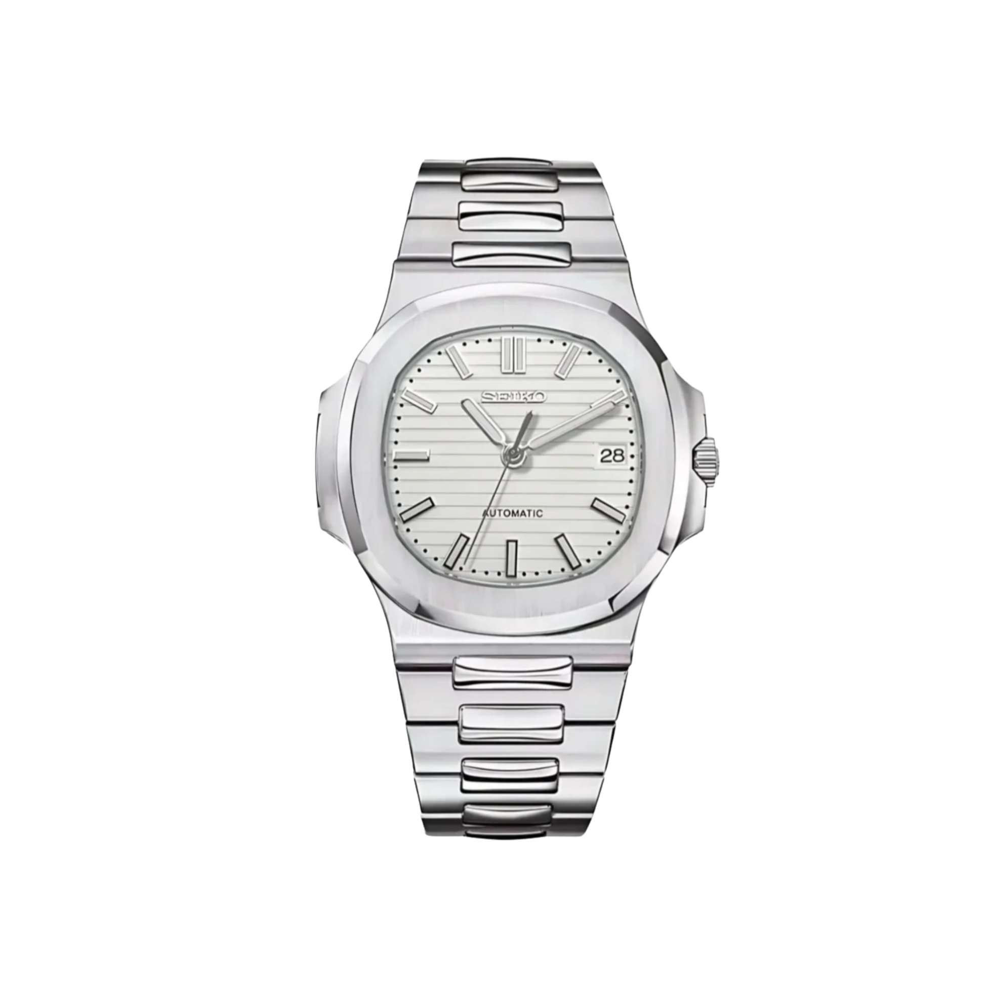 Inspired by the iconic Nautilus design, and featuring the prestigious Seiko NH38 automatic movement, we present the Seiko Mod Nautilus.