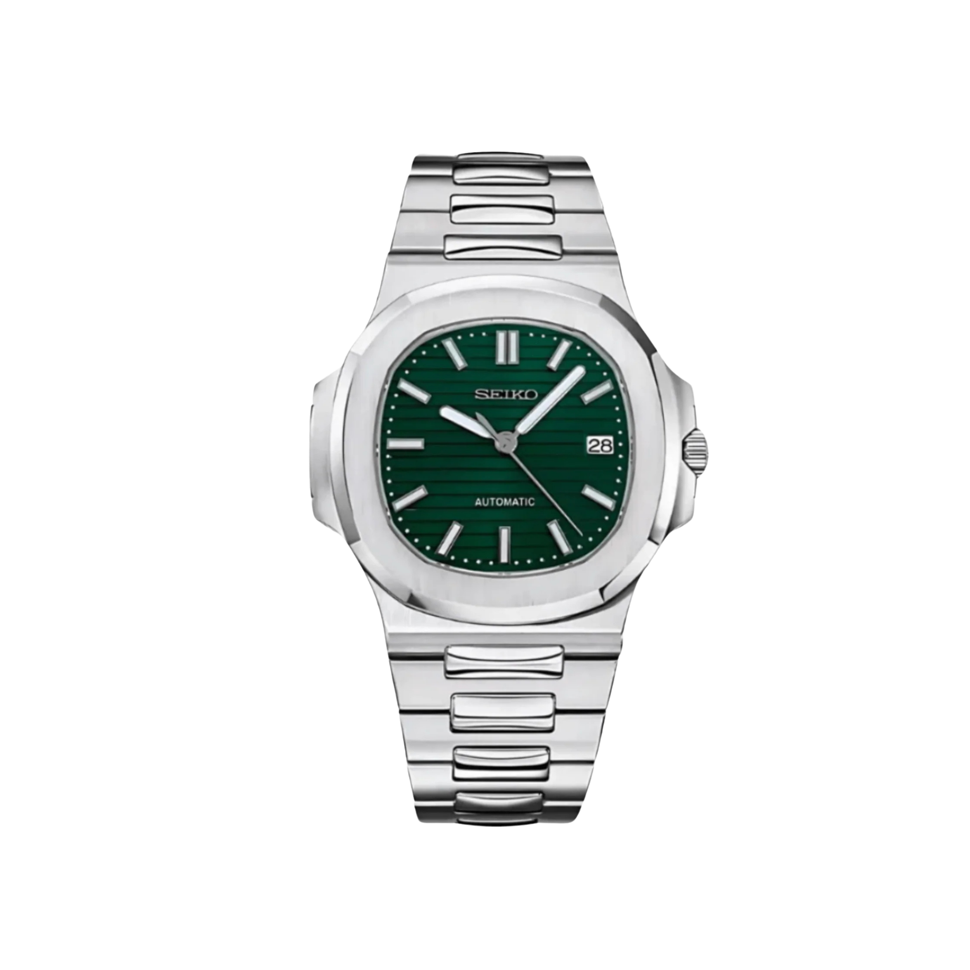 Inspired by the iconic Nautilus design, and featuring the prestigious Seiko NH38 automatic movement, we present the Seiko Mod Nautilus.