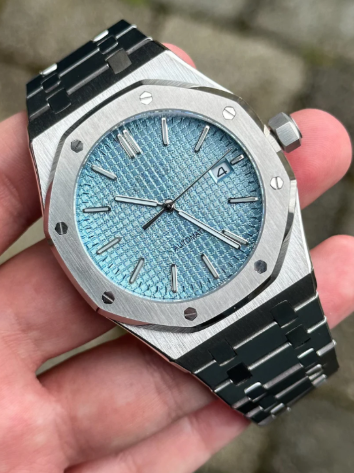Inspired by the iconic Royal Oak design, and featuring the prestigious Seiko NH35 automatic movement, we present the Seiko Mod Royal Oak. A 41 mm high-end quality watch combining the perfect alliance between excellence and accessibility.