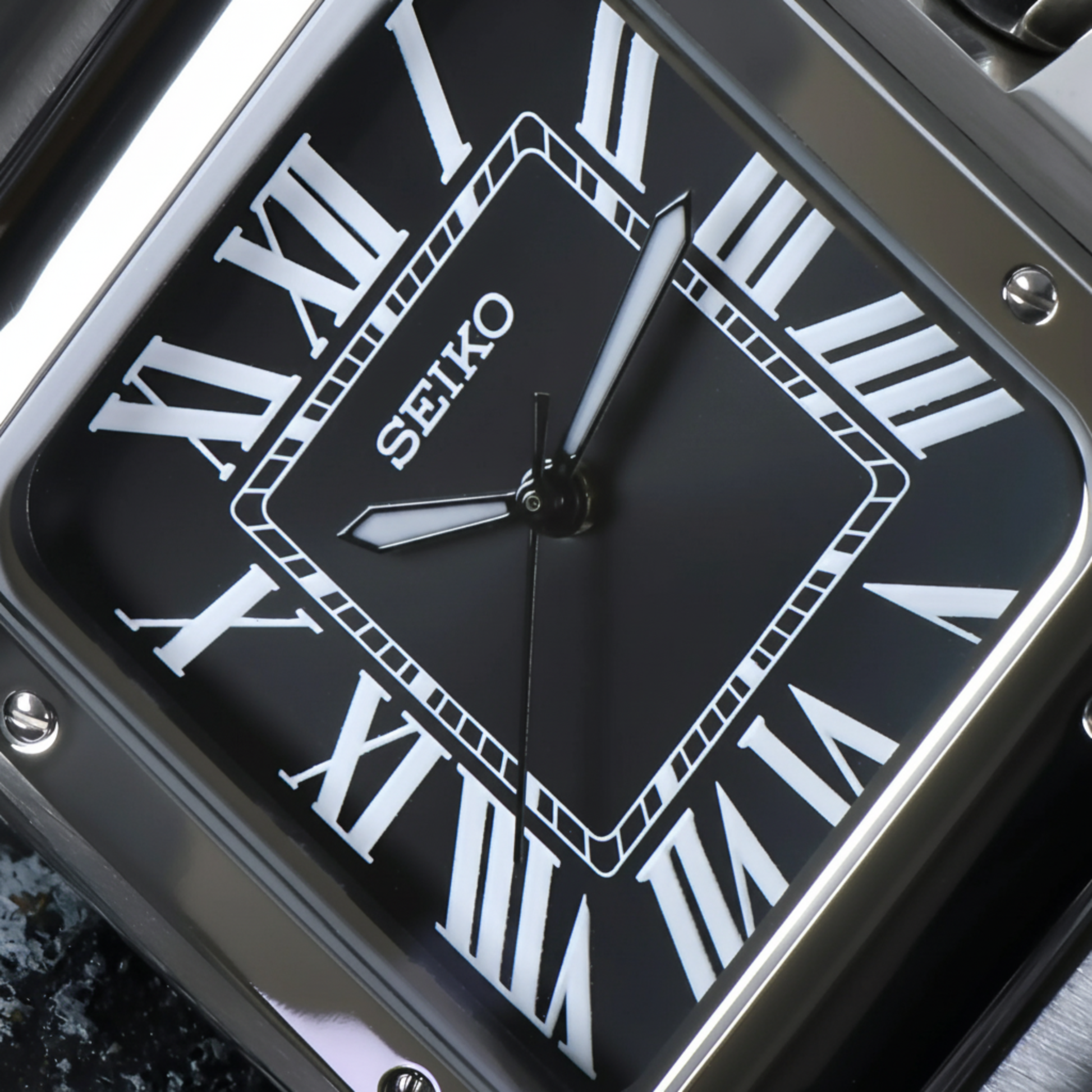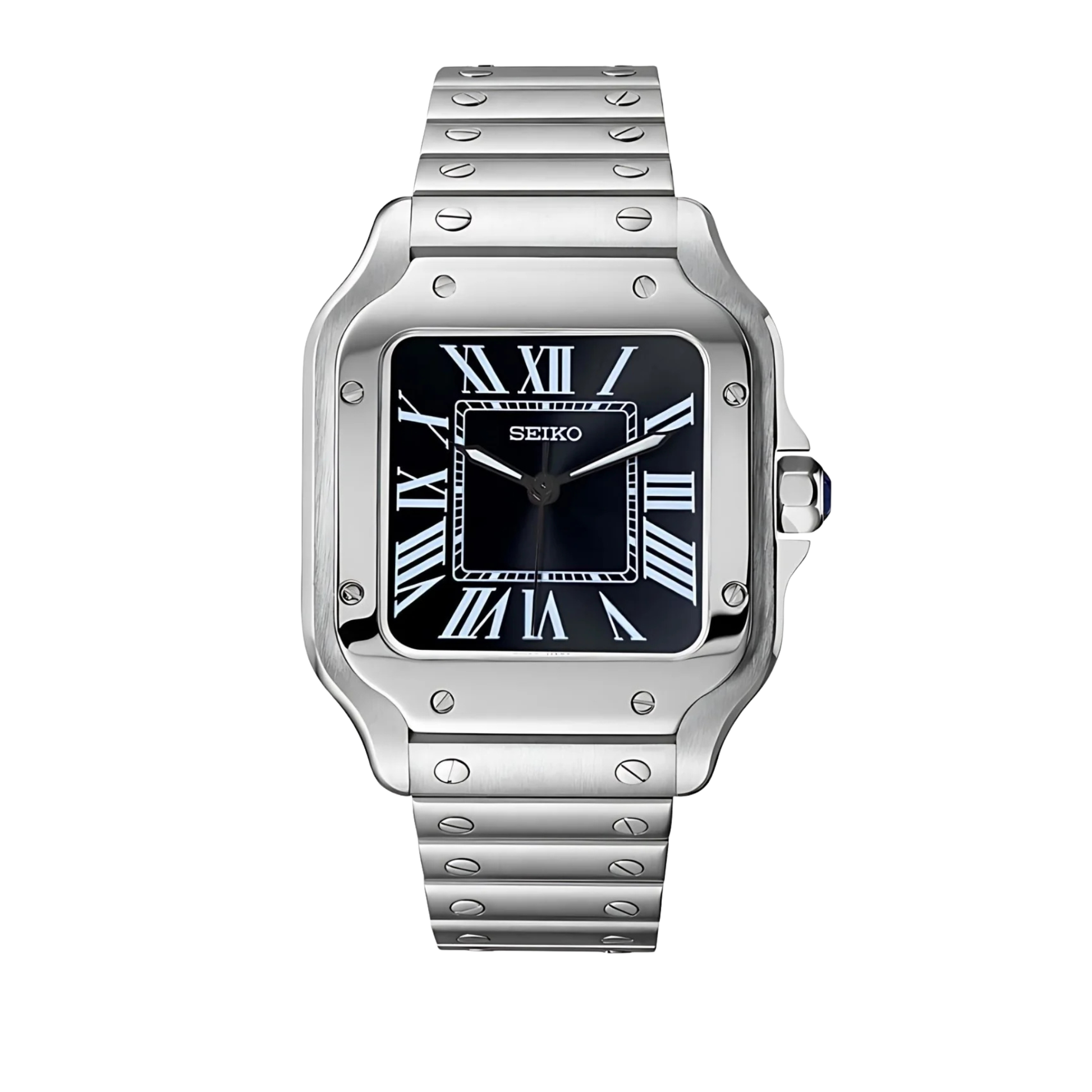 Inspired by the iconic Santos design, and featuring the prestigious Seiko NH35 automatic movement, we present the Seiko Mod Santos.