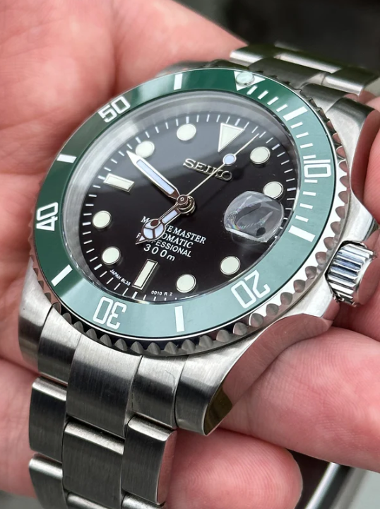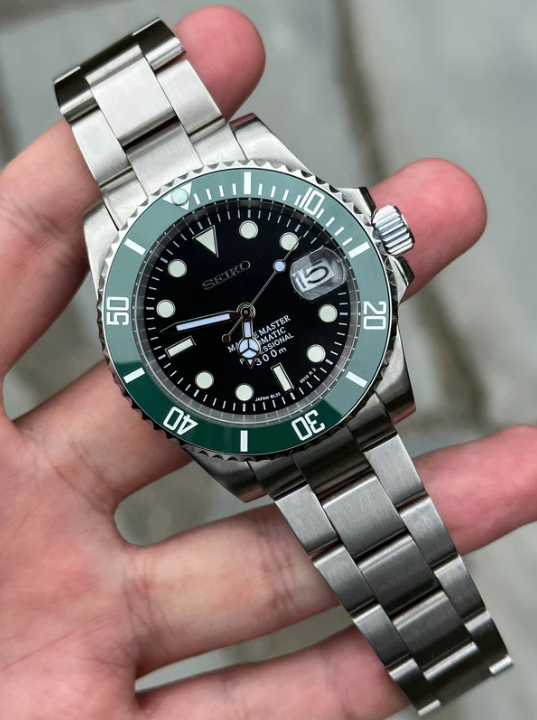 A Seiko Mod is a custom-built watch, carefully assembled using a reliable Seiko automatic or hybrid movement and paired with premium aftermarket components, often crafted from 904L stainless steel.