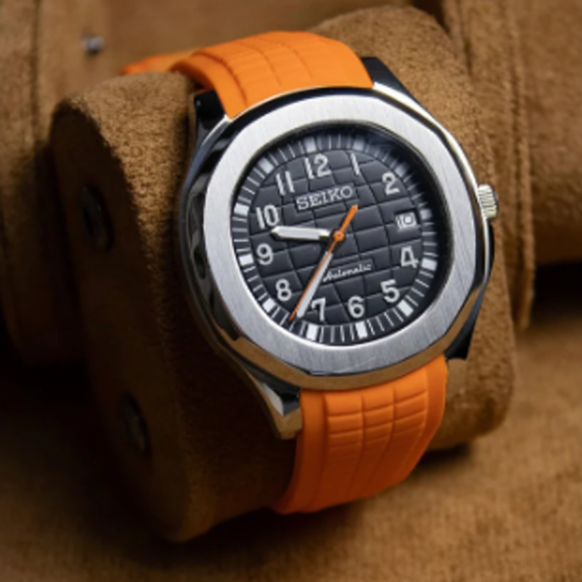 Inspired by the iconic Aquanaut design, and featuring the prestigious Seiko NH35 automatic movement, we present the Seiko Mod Aquanaut. A 41 mm high-end quality watch combining the perfect alliance between excellence and accessibility.