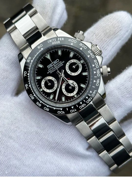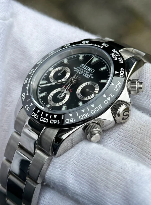 Inspired by the iconic Daytona design, and featuring the prestigious Seiko VK63 hybrid movement, we present the Seiko Mod Daytona.